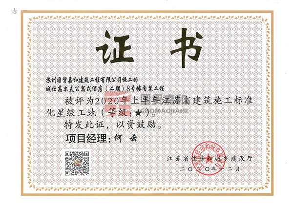城市高尔夫公寓酒店2020年上半年江苏省星级工地