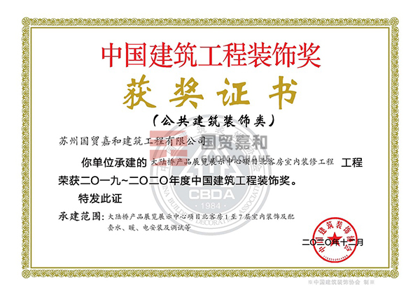 20192020年度中国建筑工程装饰奖大陆桥北客房室内装饰工程