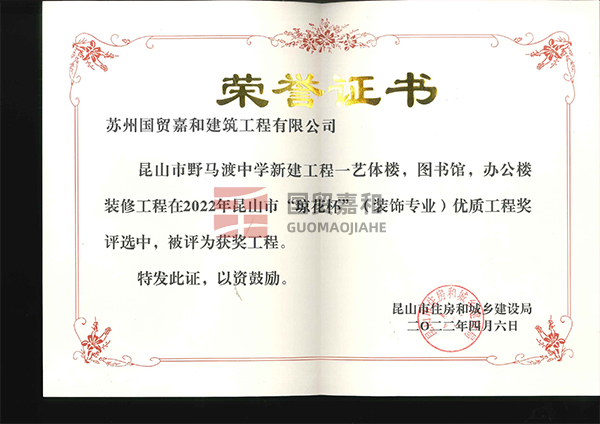 2022琼花杯-昆山市野马渡中学新建工程-艺体楼,图书馆,办公楼装修工程