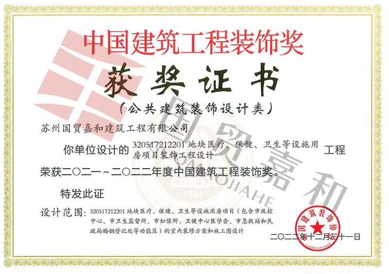 320517212201 地块医疗、保健、卫生等设施用 房项目装饰工程设计荣获中国建筑装饰工程奖