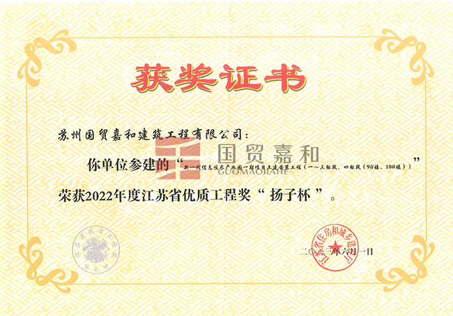 “新一代信息技术产业园一期项目土建安装工程(一~三标段,四标段(9#楼、10#楼)) 荣获2022年度江苏省优质工程奖“ 扬子杯 ”
