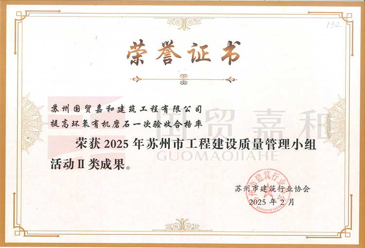 荣获2025年苏州市工程建设质量管理小组活动Ⅱ类成果