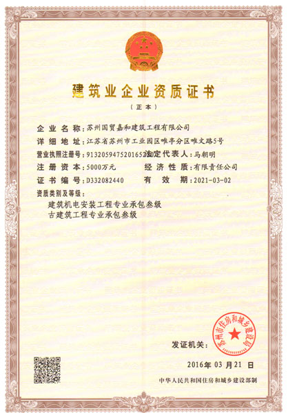 建筑机电、古建筑专业承包叁级