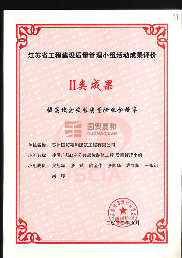 江苏省工程建设质量管理小组活动成果评价Ⅱ类成果