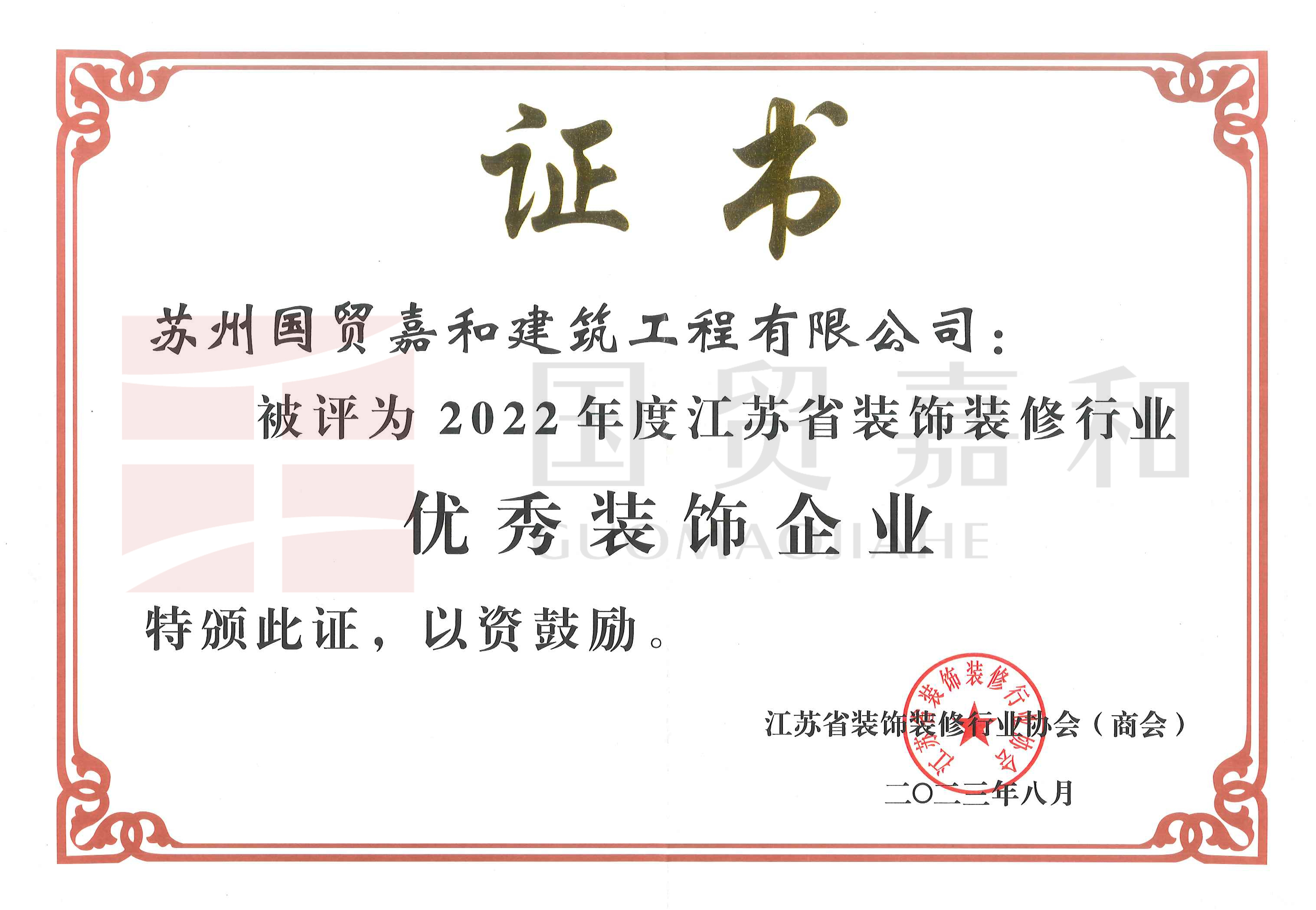 2022年度江苏省装饰装修行业优秀装饰企业